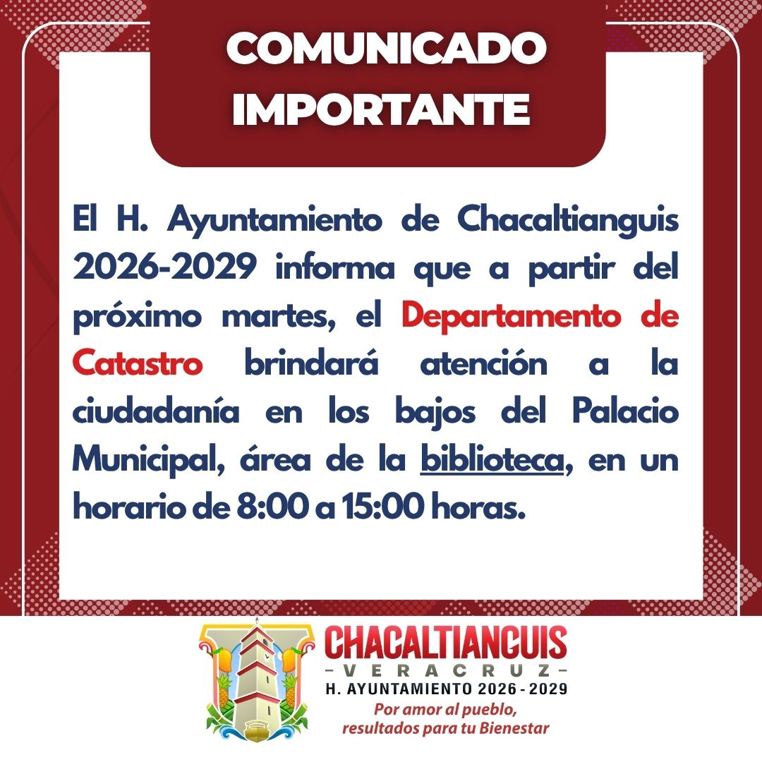 Catastro cambia de sede en Chacaltianguis; atenderá en Palacio Municipal