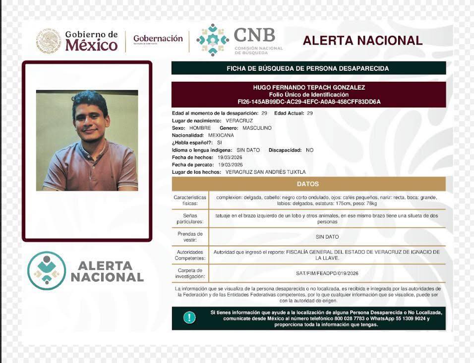 Urgente: buscan a Hugo Fernando Tepach González; piden apoyo ciudadano