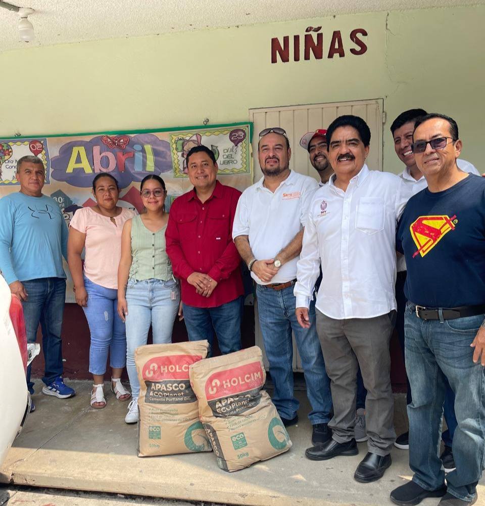 Refuerzan escuela en Tierra Blanca con entrega de cemento
