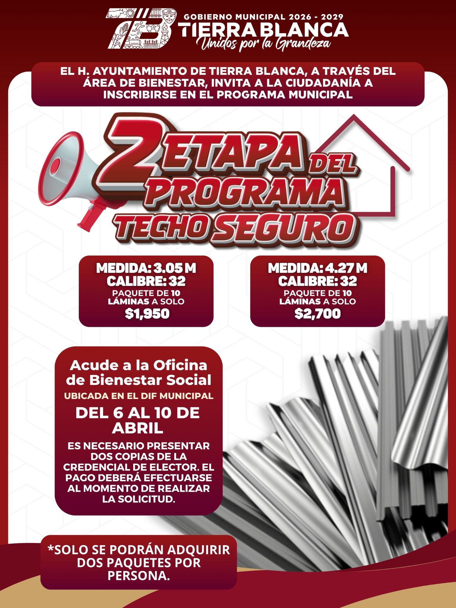 Arranca segunda etapa de “Techo Seguro” en Tierra Blanca; ofrecen láminas a bajo costo