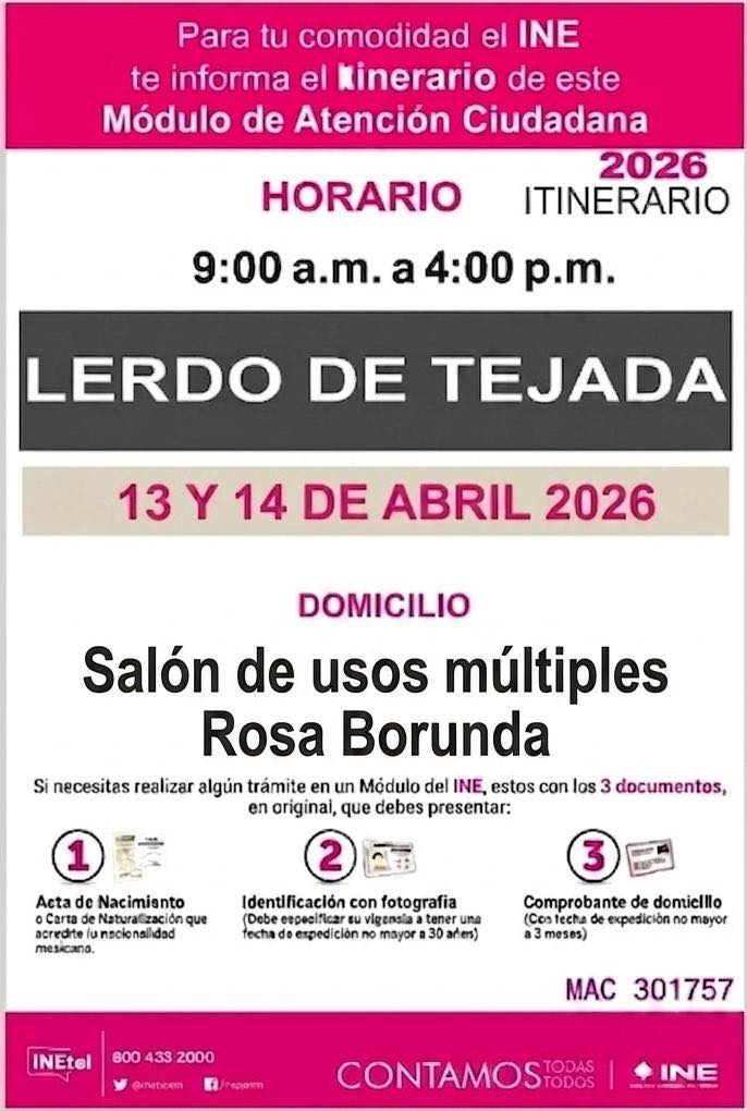 INE instala módulo itinerante en Lerdo de Tejada; estará solo dos días