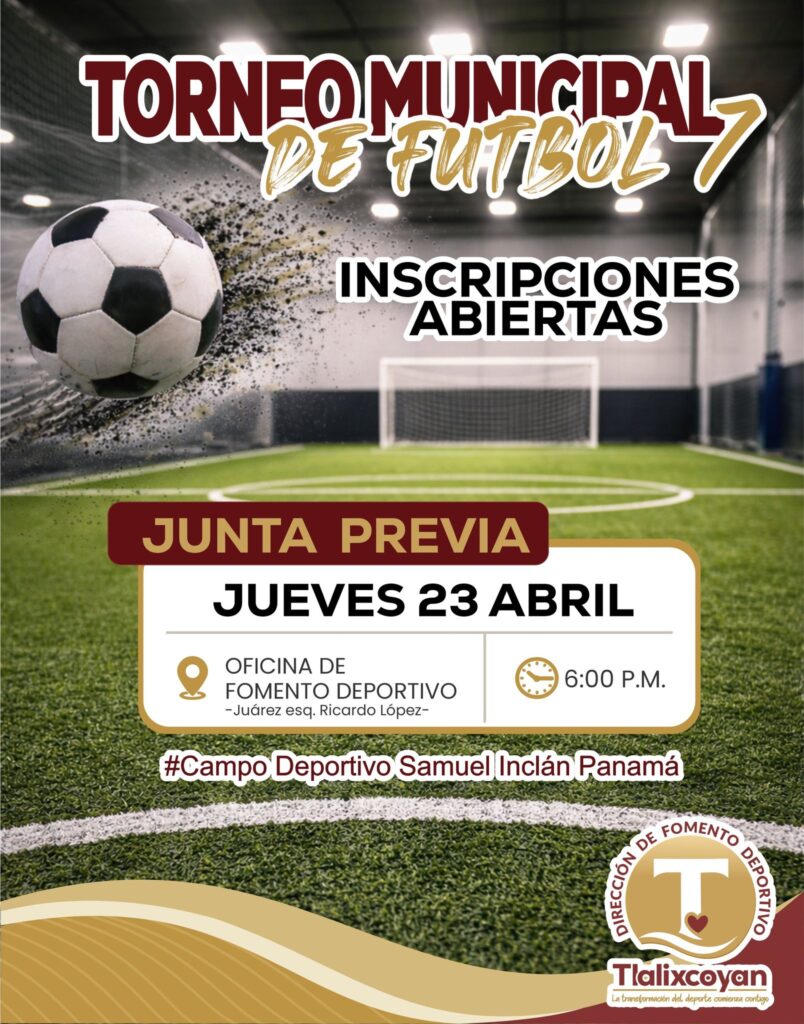 Con el objetivo de fomentar la actividad física y fortalecer la convivencia entre jóvenes y adultos, la Dirección de Fomento Deportivo anunció el inicio del Torneo Municipal de Futbol 7, abriendo oficialmente el periodo de inscripciones para los equipos interesados.