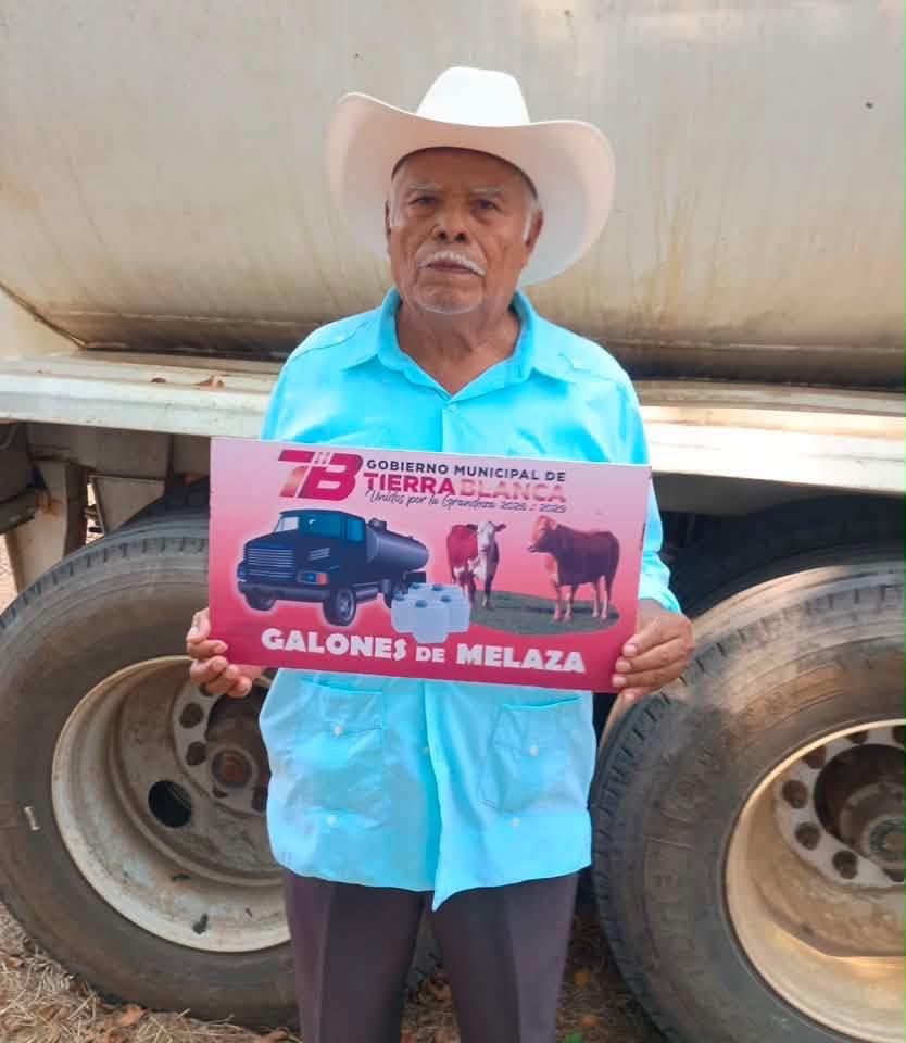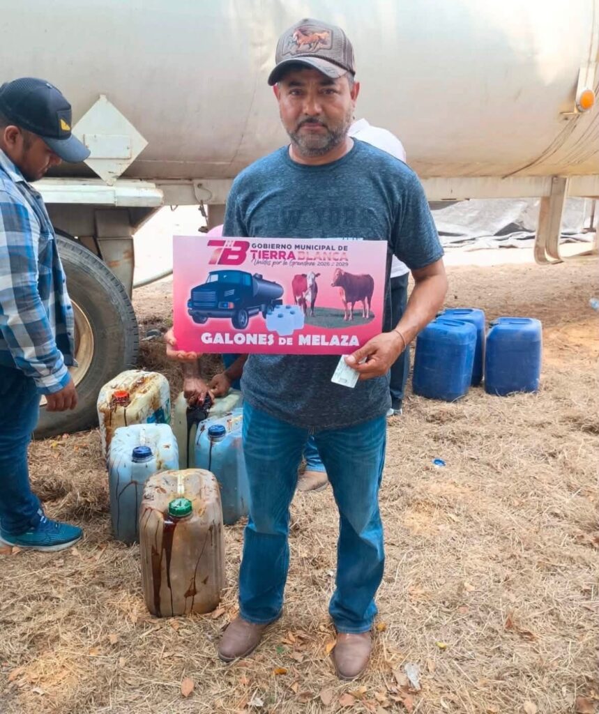 En una acción directa orientada a fortalecer la economía rural, el Gobierno Municipal de Tierra Blanca, encabezado por el alcalde Edwing Eduardo “Lalo” González Fernández, avanza en la entrega de más de 30 mil litros de melaza de manera gratuita en beneficio de pequeños ganaderos del municipio.