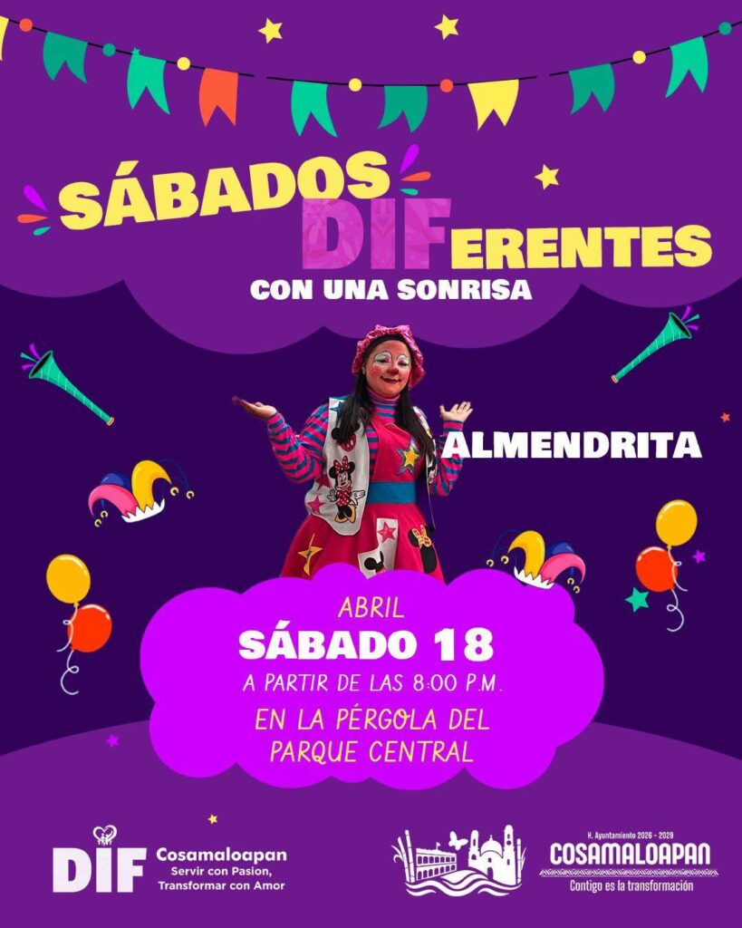 El DIF Municipal de Cosamaloapan 2026–2029 invita a la ciudadanía a disfrutar de un “Sábado DIFerente”, un evento pensado para la sana convivencia familiar que se llevará a cabo este fin de semana en la pérgola del parque central.