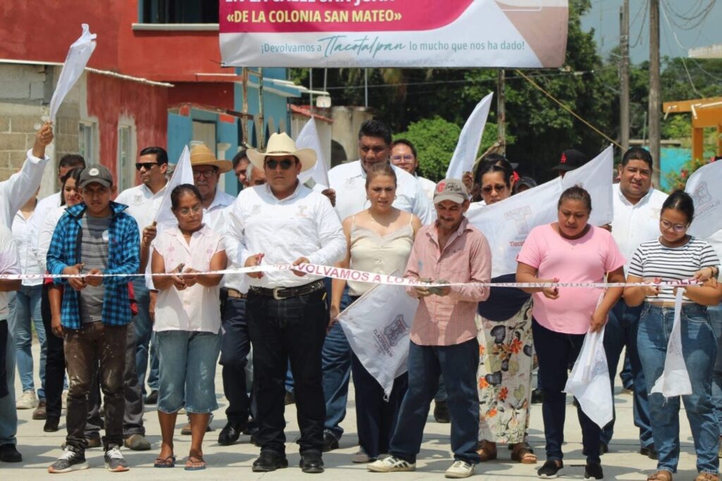 El presidente municipal de Tlacotalpan, Ing. Luis Medina Aguirre, encabezó este jueves la entrega oficial de la obra de guarniciones y banquetas en la calle San Juan, ubicada en la colonia San Mateo, como parte de los compromisos asumidos por su administración para mejorar la infraestructura urbana del municipio.