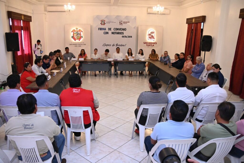 En un paso clave para fortalecer la seguridad jurídica de las familias, el Ayuntamiento de San Andrés Tuxtla firmó un acuerdo de colaboración con la Decimonovena Demarcación del Colegio de Notarios, con el objetivo de ofrecer trámites testamentarios permanentes y a bajo costo en el municipio.
