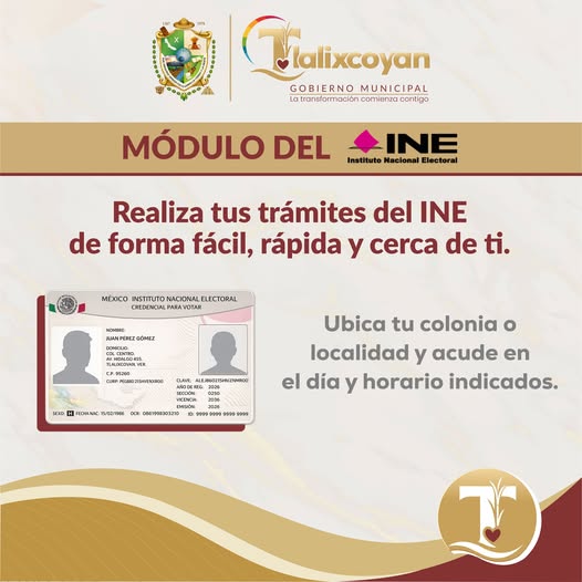 Con el objetivo de facilitar el acceso a trámites oficiales y mantener actualizada la credencial para votar, el Instituto Nacional Electoral (INE) instalará un módulo de atención en la localidad de Piedras Negras los días 23, 24, 27 y 28 de abril, en un horario de 09:00 a 15:00 horas.