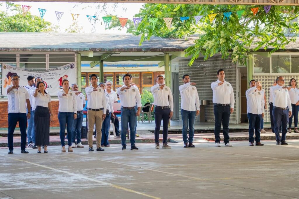 Acompañado por directores de distintas áreas del Ayuntamiento, el edil reafirmó que su gobierno mantiene como prioridad el fortalecimiento de la educación y los valores patrios entre la juventud tlacotalpeña.