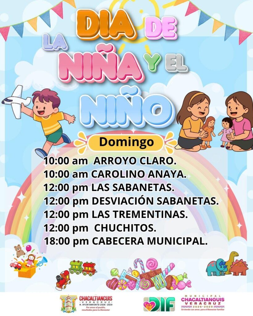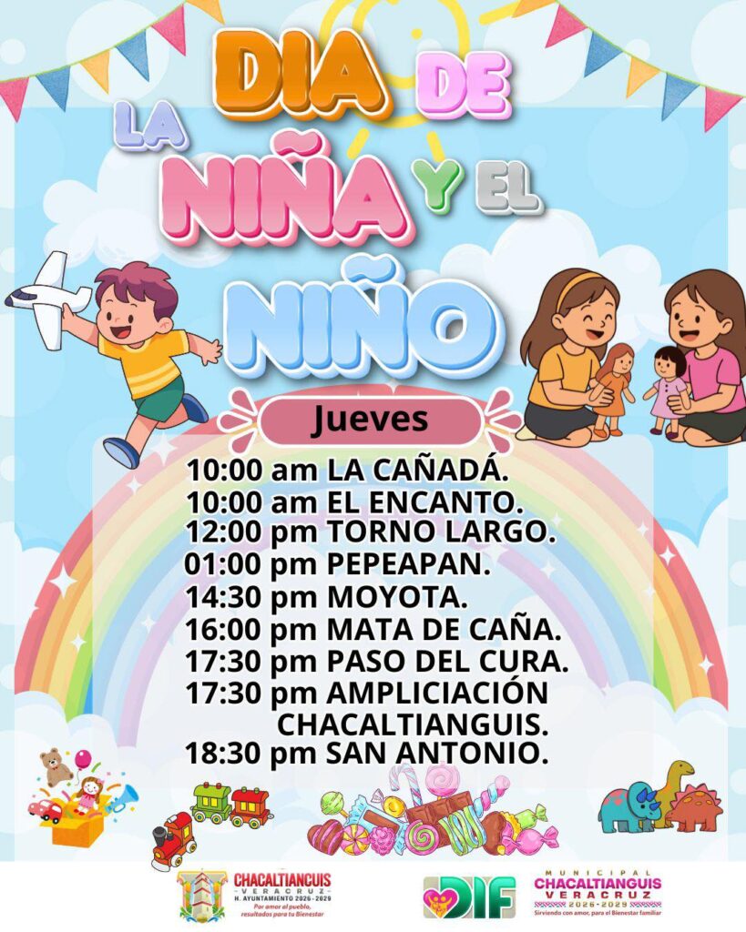 Con el objetivo de llevar sonrisas y momentos inolvidables a las niñas y niños del municipio, el DIF Municipal de Chacaltianguis, en coordinación con el H. Ayuntamiento 2026–2029, anunció la realización de la “Ruta de la Alegría”, una jornada especial dedicada a festejar a la niñez.