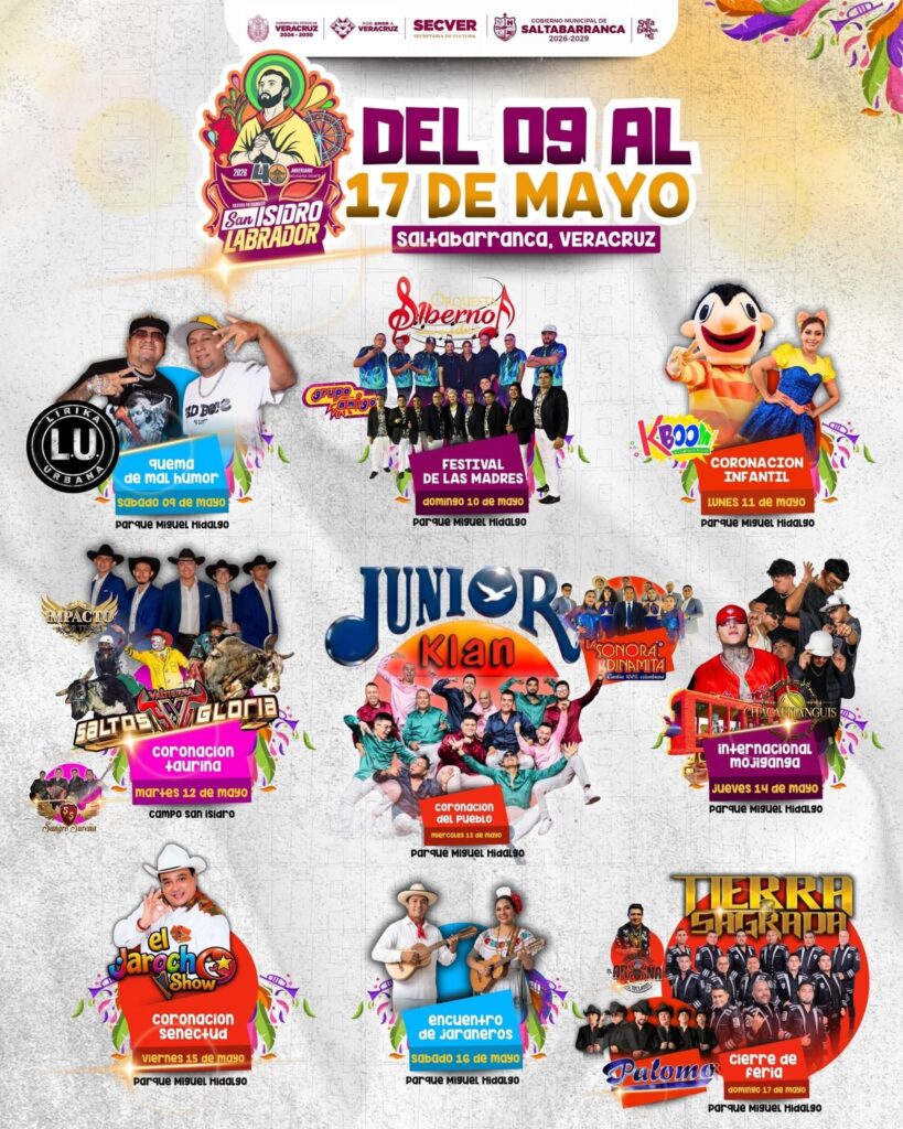 Con una amplia cartelera artística, cultural y tradicional, el municipio de Saltabarranca se alista para celebrar en grande la Feria de San Isidro Labrador 2026, que se llevará a cabo del 9 al 17 de mayo, consolidándose como una de las festividades más importantes de la región.