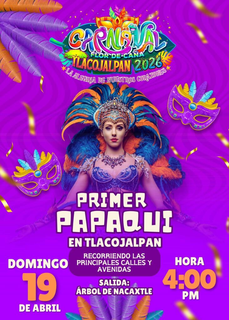 La fiesta ya se siente en Tlacojalpan. Como parte de las actividades del Carnaval Flor de Caña 2026, el municipio se alista para celebrar su Primer Papaqui, un evento que llenará de color, música y tradición las principales calles.