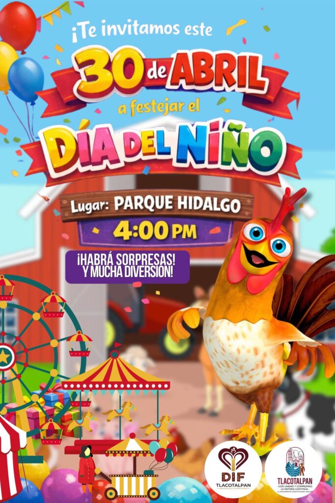 Con una fiesta llena de alegría, juegos y sorpresas, el Gobierno Municipal de Tlacotalpan invita a todas las niñas y niños a celebrar el Día del Niño este próximo 30 de abril en el Parque Hidalgo.